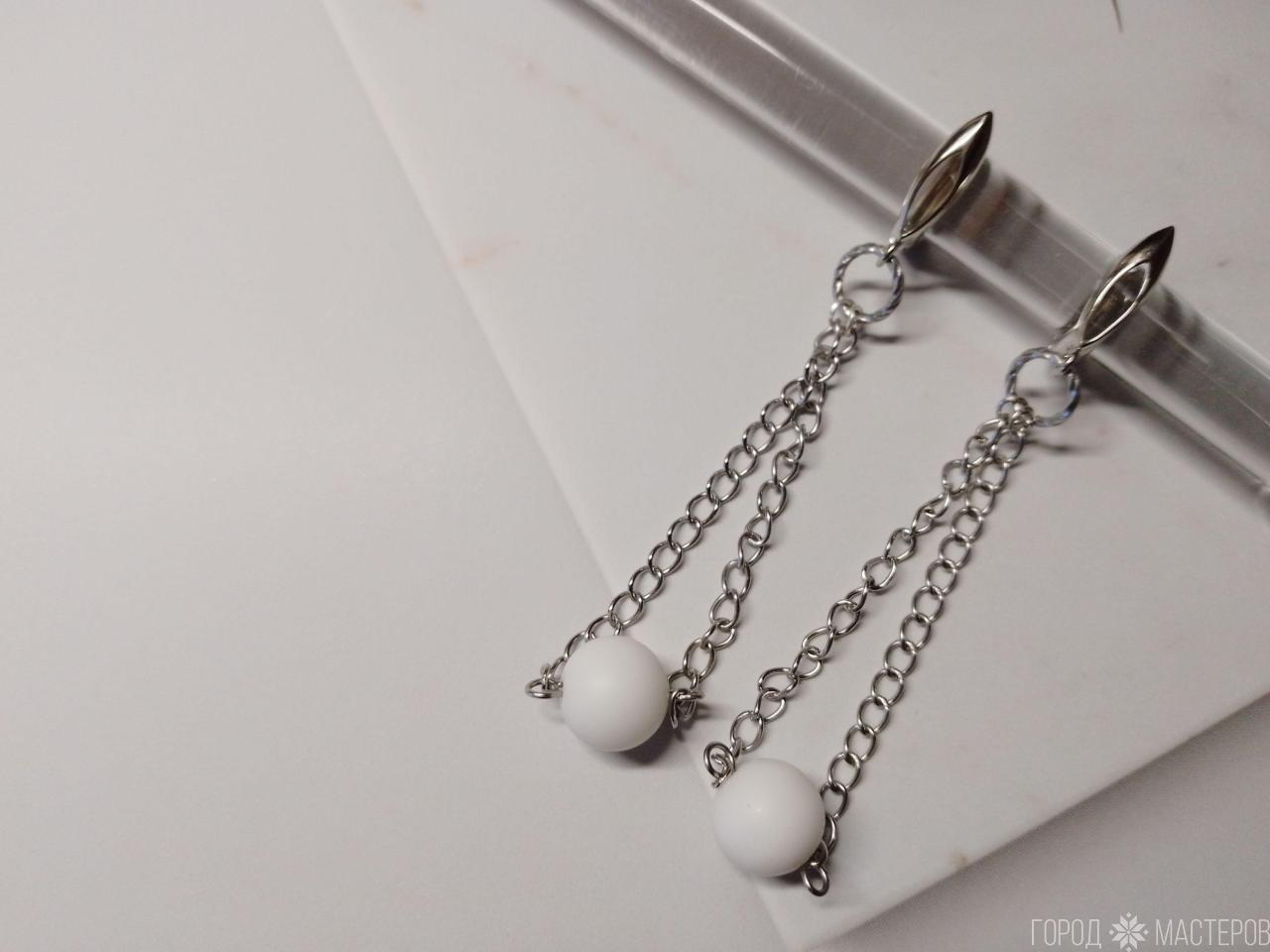 Серьги "Сияние луны" с натуральным белым агатом ручной работы ※ Могилев
