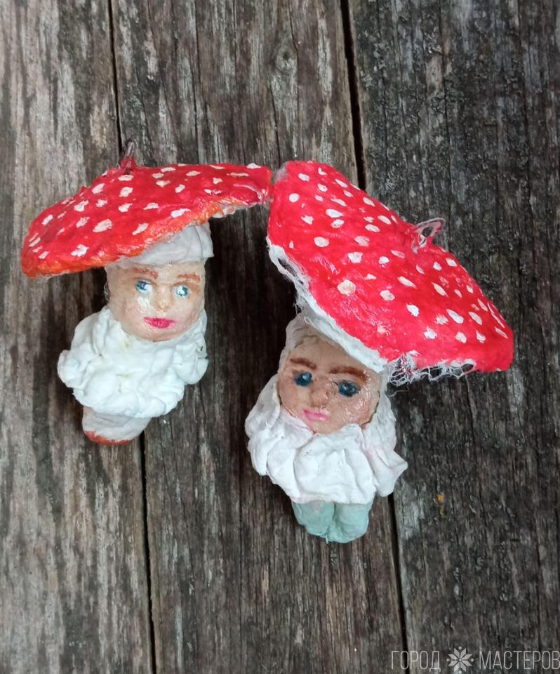 • Сказочные грибы мухоморы с лицами. Ватные игрушки - 4