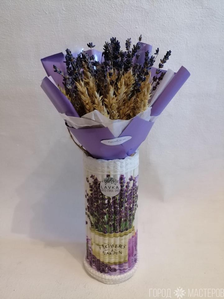 Сухоцветы в вазочке-лаванда ручной работы ※ Минск