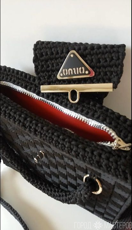 Сумочка под "Prada" на канве чёрная с красной подкладкой.(р-р смотрите описание ручной работы в ручной работы ※ Слоним