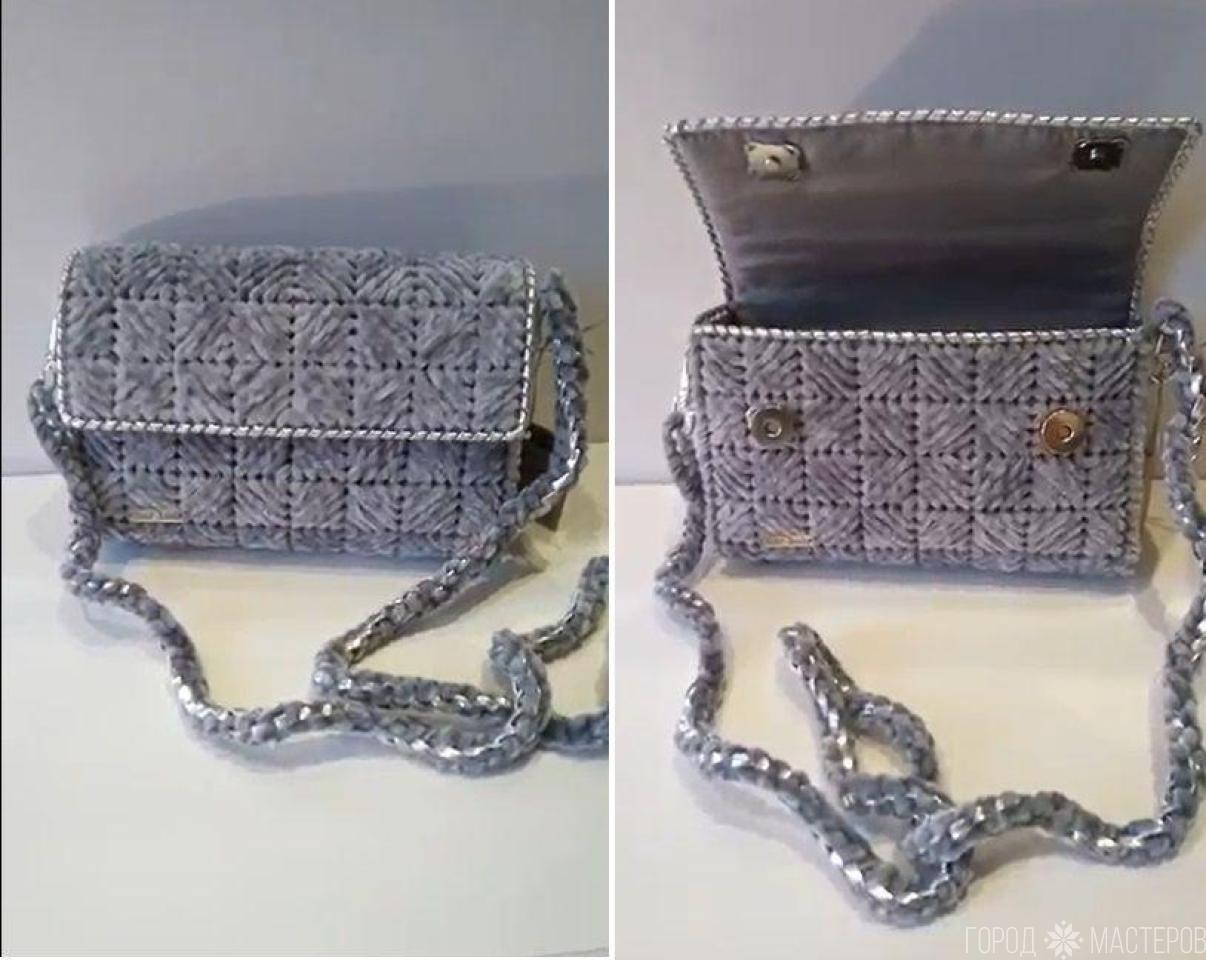 Сумочка серая на канве из бархатного шнура \отделка серебряный шнур\фурнитура в серебре