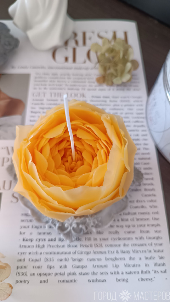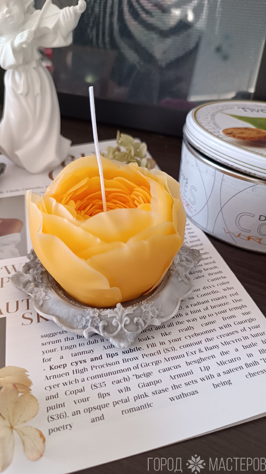 Свеча пион - нежный, жёлтый пион привнесет в дом уют, тепло, эстетику. Свеча из натурального пчелиного воска.