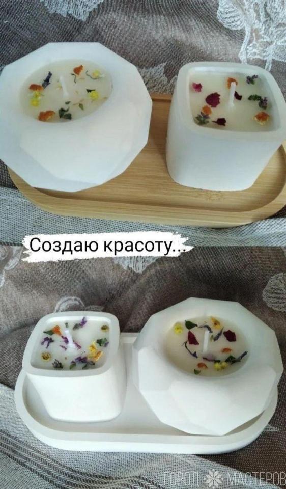 Свечи на все сферы жизни по индивидуальному заказу и рецепту по всем сферам жизни: любовь, привлечь внимание, удача, финансы, избавление от негатива и защита человека и дома и другие. Свечи изготавливаются из натурального пчелиного воска с добавлением трав, масел. Свечи-скрутки, катаные, заливные. Декоративные заливные свечи из соевого и пальмового воска в подсвечниках из гипса.