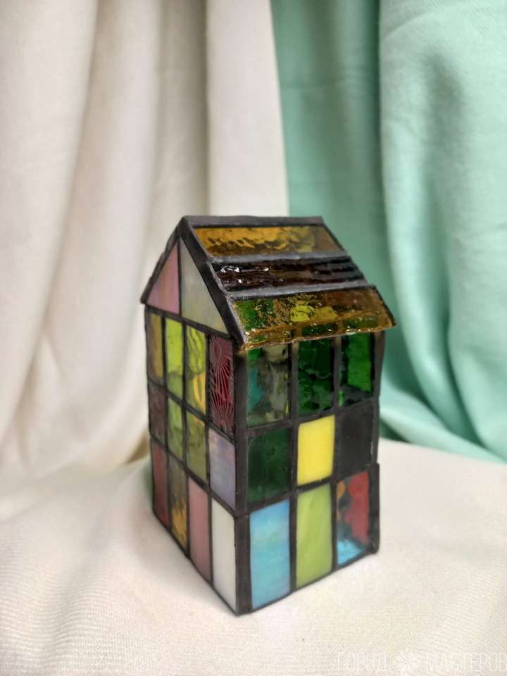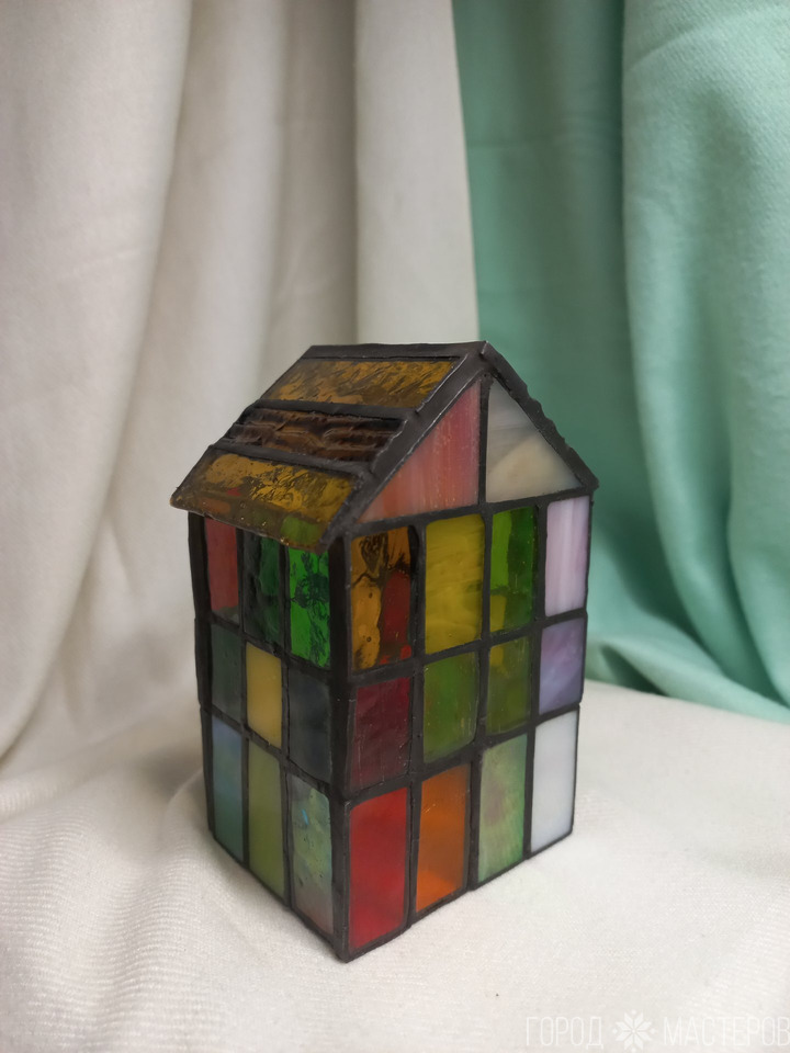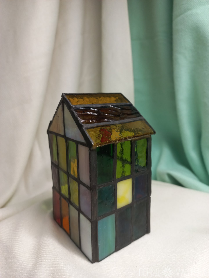 Светильник из витражного стекла выполнен в технике Тиффани - дом 🏡