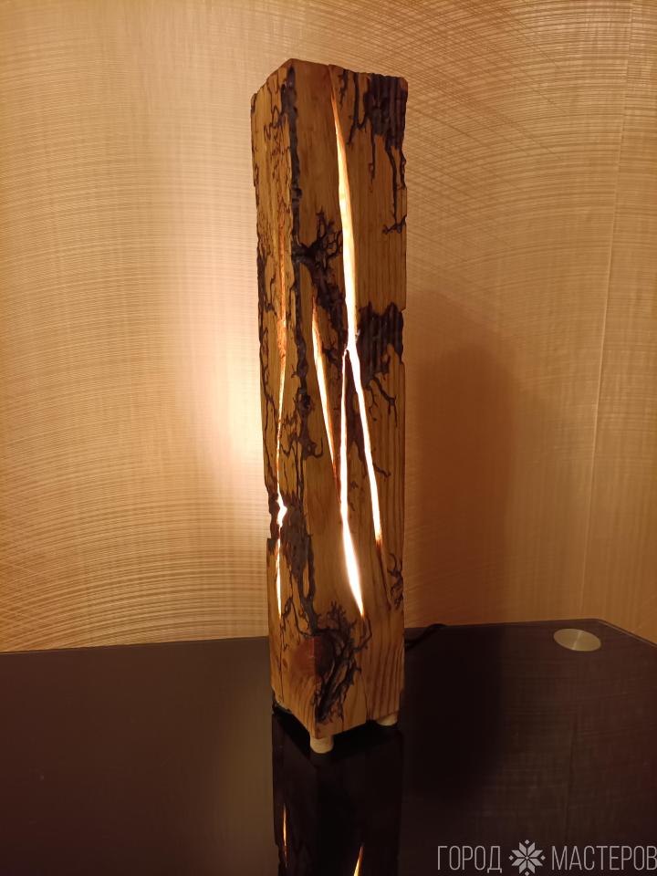 Светильник настольный. Дерево. Высота 55 см. Узор - пирография.