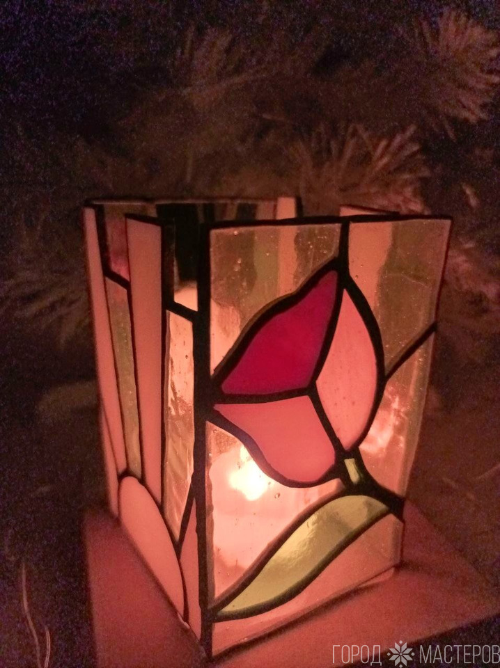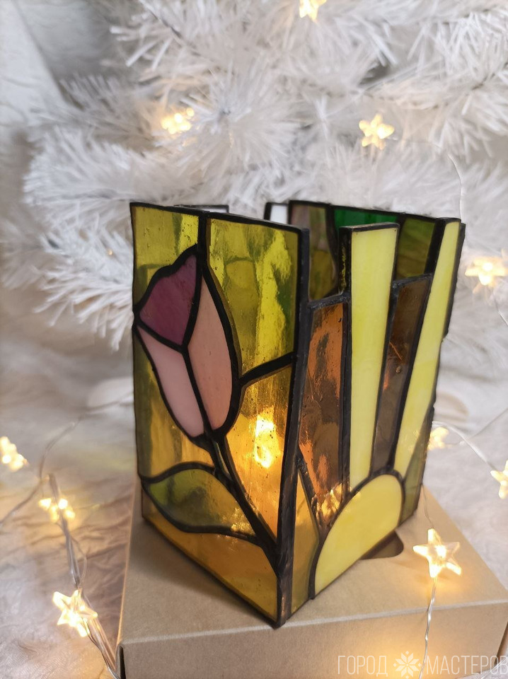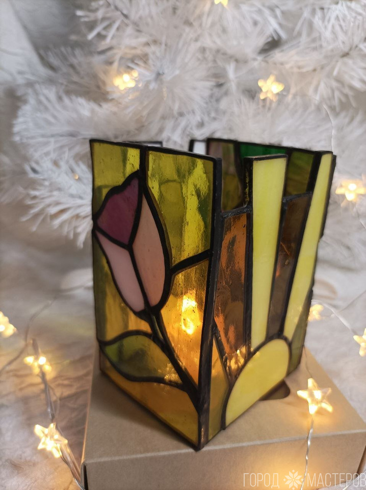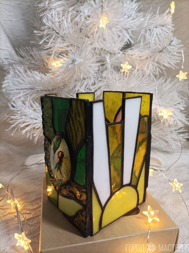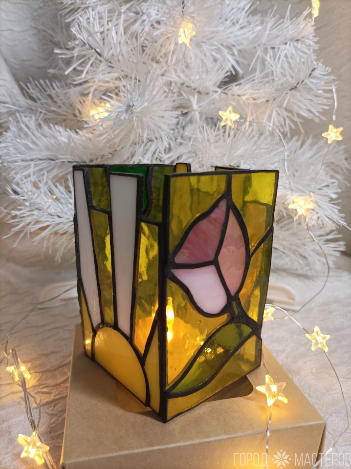 Светильник-ночник "Дюймовочка" из витражного стекла выполнен в технике Тиффани ручной работы ※ Полоцк