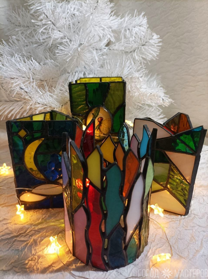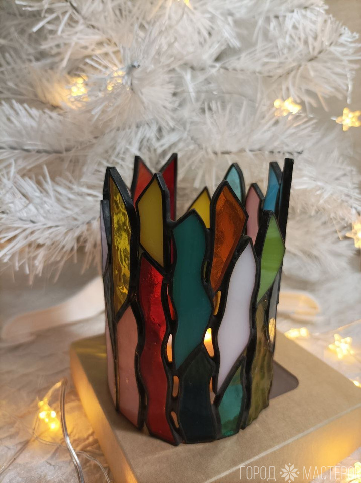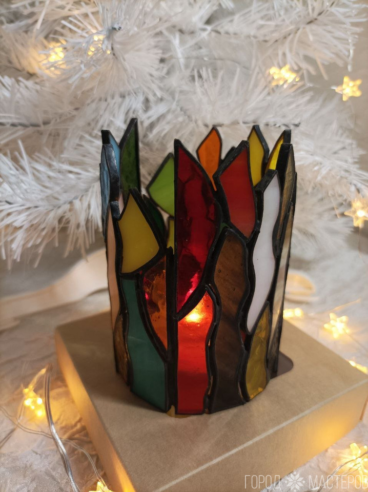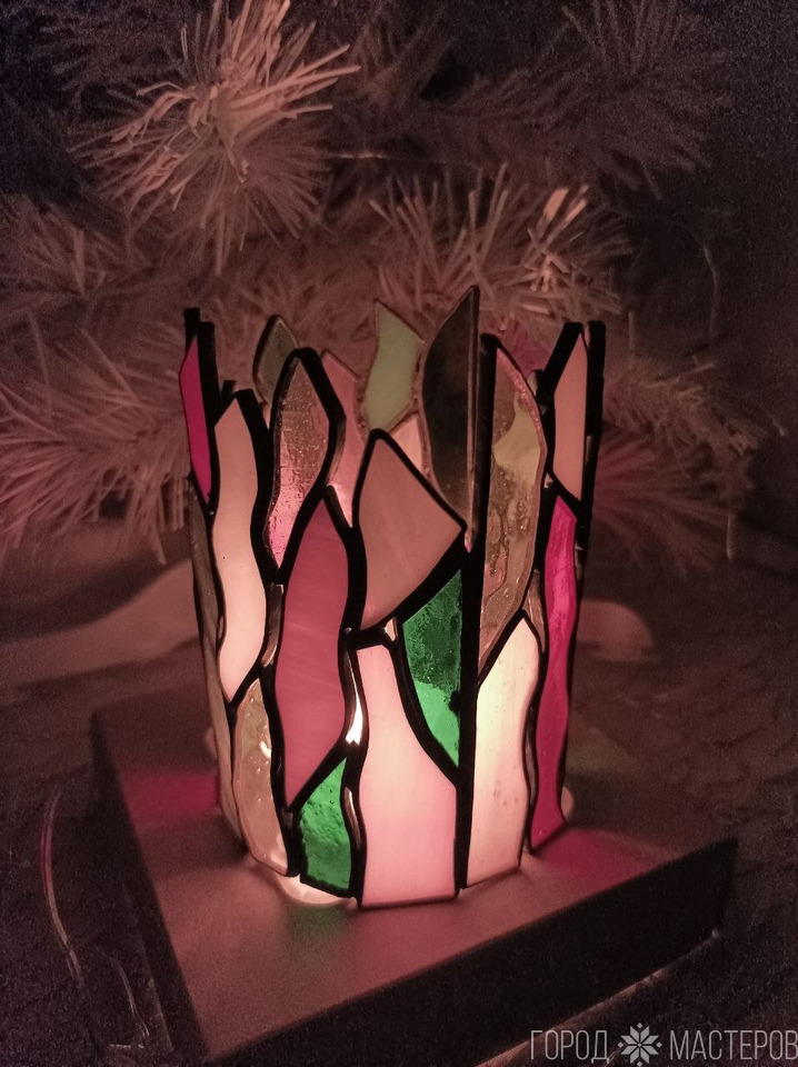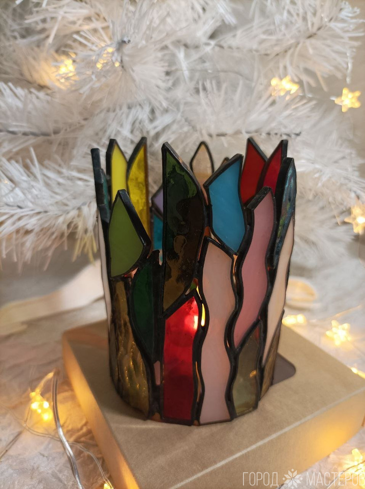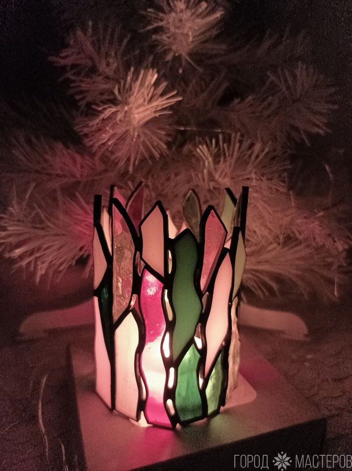 Светильник-ночник круглый из витражного стекла выполнен в технике Тиффани ручной работы ※ Полоцк