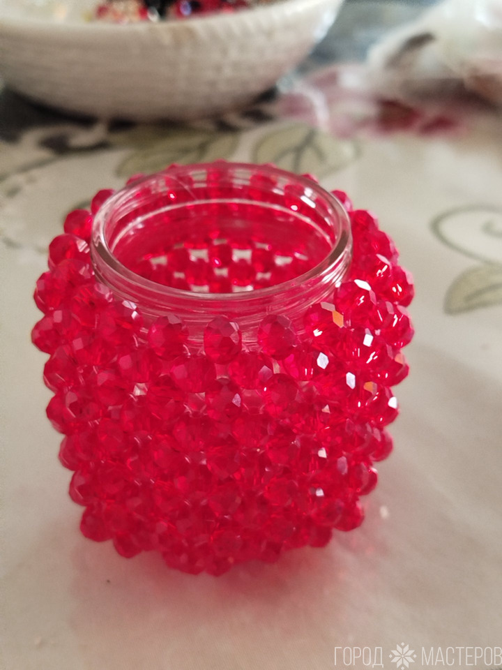 Мини вазочка для живых цветов. Можно использовать как сольничку или молочник  . На заказ можно сделать любого размера и из любых бусин. Внутри любая стеклянная ёмкость