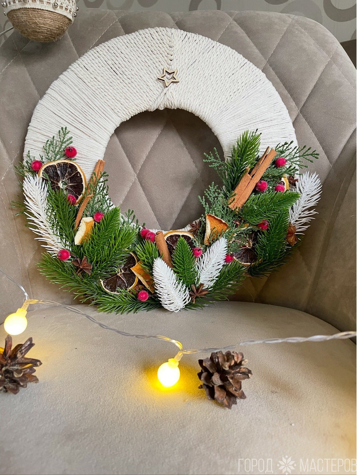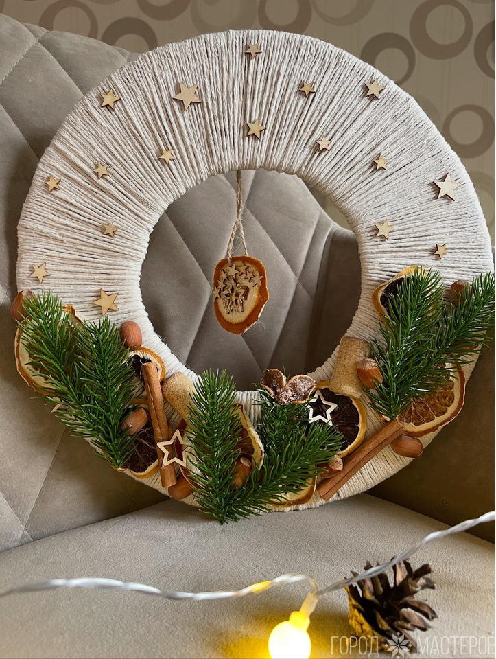 Давайте на чудо надеяться - Рождественский Ангел спешит... Пусть сердце любовью согреется! А в доме пусть счастье царит! Этот символ благополучия, любви и счастья ютно разместится в праздничном интерьере вашего дома и и станет великолепным подарком подарком вашим близким. Сувенир изготовн из хлопковой нити, фиксация - клей ПВА. Высота фигурки 13-14 см. Упак...