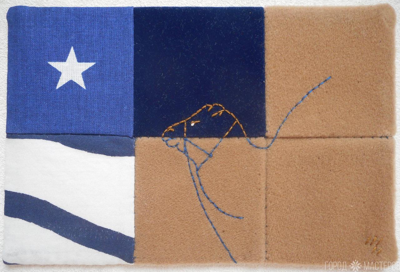 Авторство подтверждает подпись-стежки в виде буквы "Ч" в правом нижнем углу и рукописная табличка с информацией с обратной стороны композиции.