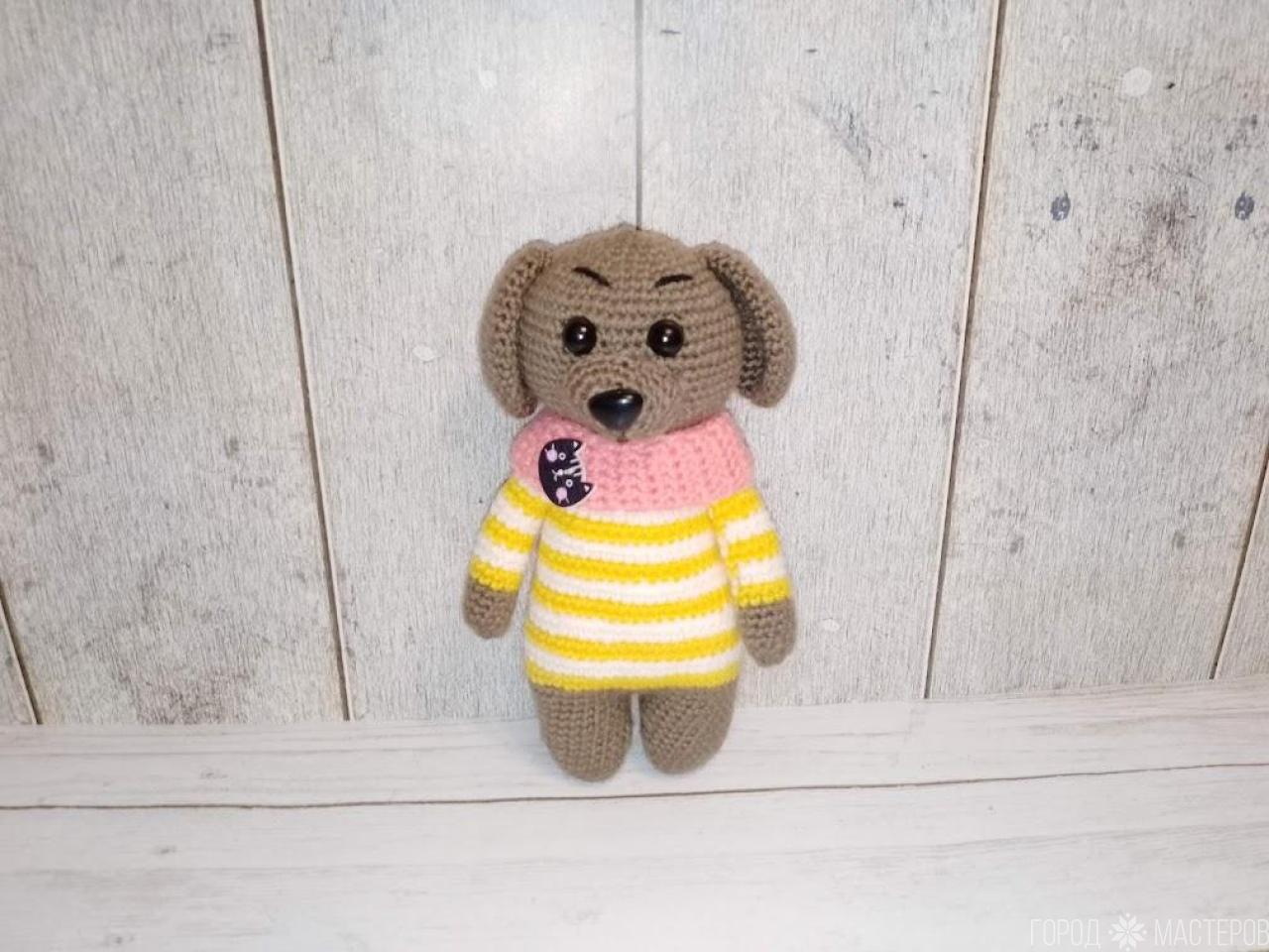 Вязаная собачка крючком. Наполнитель синтипух. Безопасные глазки . Оправлю почтой/европочтой из Могилева . Нет в наличии, свяжу на заказ за 5-7 дней. Смотрите другие моиобъявления.В наличии очень много игрушек ручной работы!