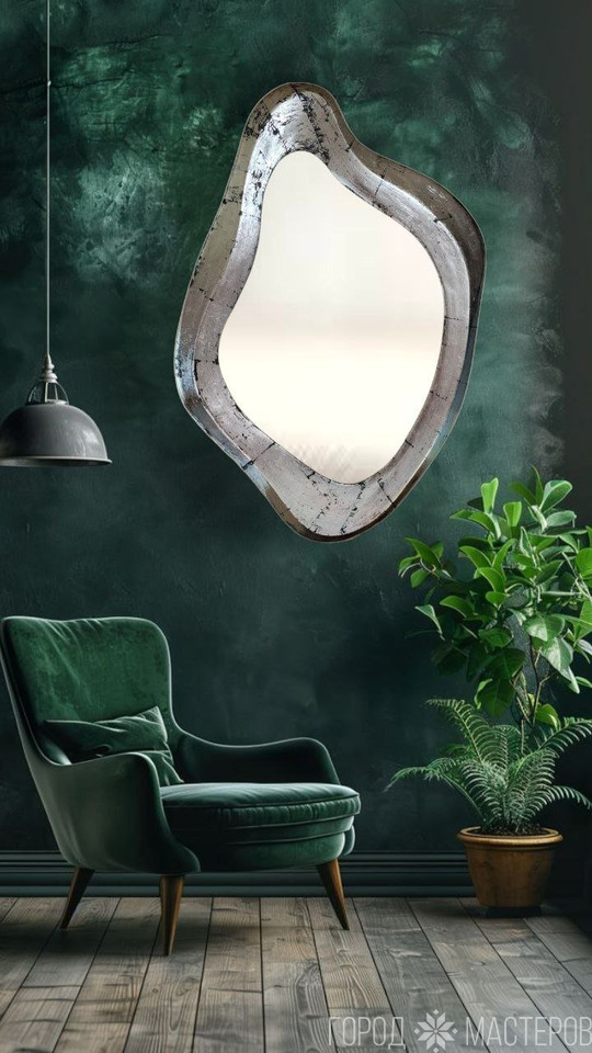 Зеркало интерьерное Lago в размере 800х1200х35 мм в отделке состаренная поталь. Современная стильная модель. Можно приобрести раму с лекалом. Зеркало вырежут в любой мастерской. Периодические скидки на наши модели. Запрос цены по e-mail: wood-interior@bk.ru
